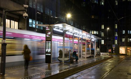 Elements included within the design of these tram stops included integral seating, LED lighting, integral information monoliths and with passive provision for a future TFT information screen and ticketing validation for the Metro. Allowance was made within the design for overhead advertising space as well as speaker mounting and public information screens.