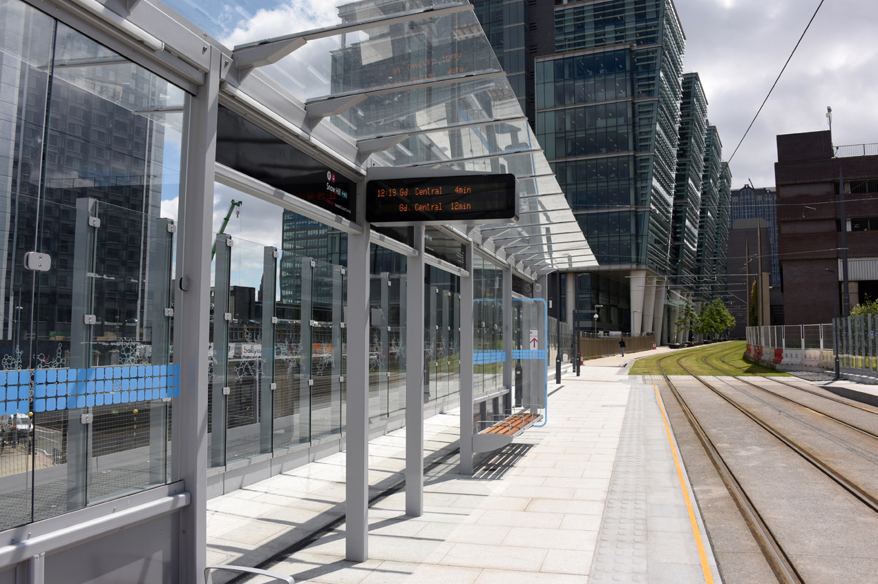 Balfour Beatty was awarded a Design & Build Contract for the BCCE project by its client Centro, within which there was a provision for on-street and off-street passenger platform shelters. The shelter design pivoted around a bus stop shelter utilised by Birmingham City Council on an earlier scheme.